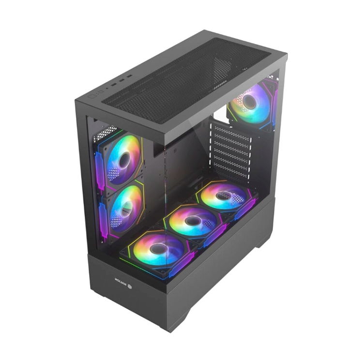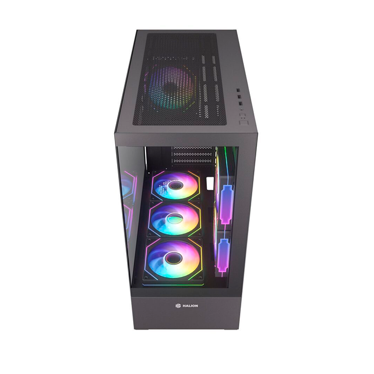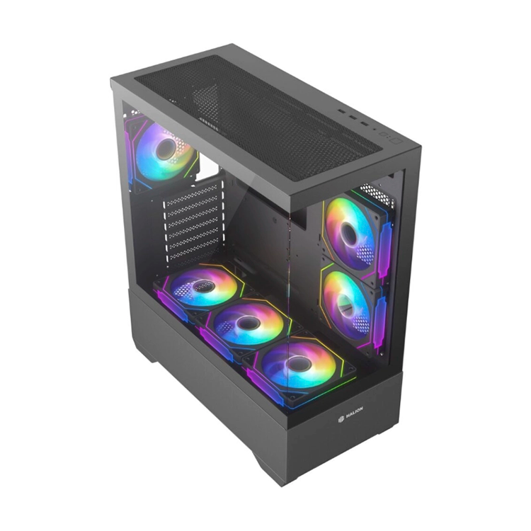 El Case Gamer Halion Jupiter K04,está diseñado para quienes buscan un gabinete moderno, espacioso y con excelente flujo de aire para armar una PC gamer de alto rendimiento. Su formato Mid Tower ATX permite instalar placas madre ATX, Micro-ATX o Mini-ITX, ofreciendo gran compatibilidad con diferentes configuraciones de hardware. Este modelo incorpora 6 ventiladores ARGB de 120 mm, que no solo mejoran la refrigeración del sistema sino que también brindan una estética gamer llamativa con iluminación personalizable.